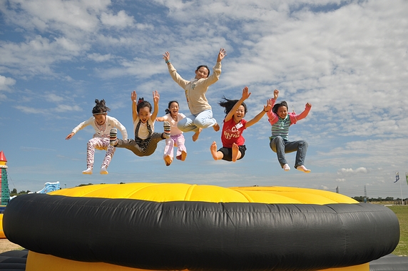 孩子们在法国格拉沃利讷游乐场愉快游玩