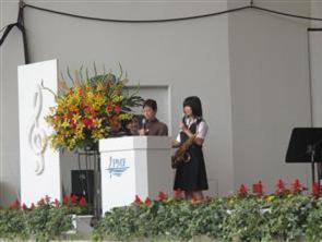 三条中学学生代表致辞 三条中学吹奏乐队正在演奏