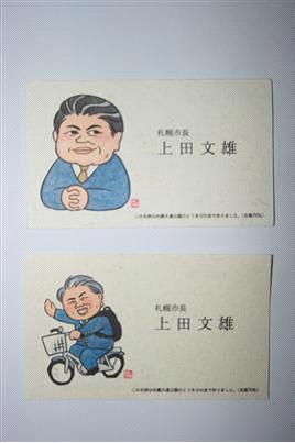 在札幌访问期间,井顿泉副会长会见了札幌市长上田文雄,双方就进一步开展各领域交流与合作坦诚交换意见。特别值得一提的是上田市长的名片,一组4张,卡通造型,别具一格。