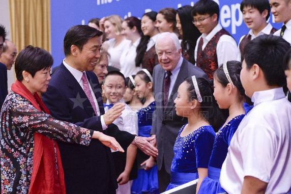 纪念中美建交35周年招待会4日在人民大会堂举行,中国国家副主席李源潮出席并会见来华参加纪念活动的美国前总统卡特。