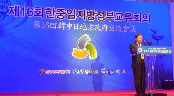 9月1日至2日,第十六届中日韩友好城市大会在韩国龟尾市举行。全国友协副会长冯佐库、韩国全国市道知事协议会会长李始钟、韩国庆尚北道知事金宽容、日本自治体国际化协会理事长冈本保以及中日韩三国地方政府代表近450人与会。