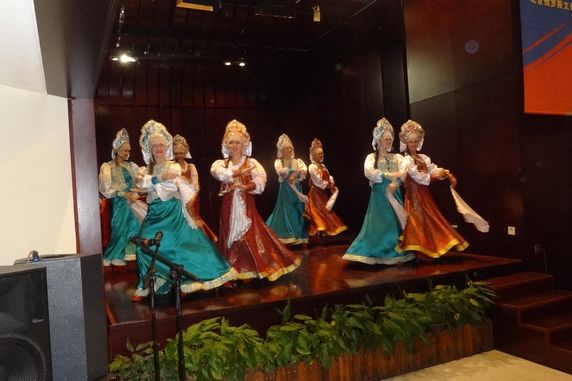 应我会邀请,俄罗斯“机遇”少儿艺术团一行25人于今年9月20日至27日来华访问演出。艺术团分别在中俄建交及中俄友协成立65周年庆祝招待会、2014年全国科普日、”第二届中俄青少年友好之夜”等多项大型活动中进行演出。此外艺术团还访问了石家庄市,并在石家庄外国语学校进行演出。李建平副会长在建交招待会席间会见了代表团团长并高度赞扬了俄方高超的艺术水平。