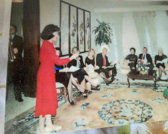 第二次活动是在次年元月5日。老布什邀请韩叙大使夫妇和参赞杨洁篪夫妇到他官邸作客。在邀请中,他还特意提到:“别忘了请那对会唱歌的夫妇也到我家来,我和我家人都喜欢听他们唱歌”。美国副总统官邸离我们使馆不远,只有几个街区的距离。由于韩大使那天事前已安排重要活动难以更改,因此只有我们和杨洁篪夫妇驱车前往了。老布什夫妇居住在美国副总统官邸,而副总统办公地是在美国白宫西翼的西头。副总统官邸原是美国海军天文台一号楼,是一座白色外墙的两层建筑,建于1830年,1974年美国国会决定划归为副总统官邸。比起5100平方米的白宫,只有850平方米的副总统官邸要小得多。我们一行四人到了老布什家,先看到很大的大厅和壁炉。他邀我们参观了他的官邸,“你们参观参观我的住室吧”。美国副总统官邸并不像人们想象的那么豪华,那么富丽堂皇。令人印象深刻和感受到他对中国情感的是,卧室中有一个中国古董专柜,这些古董主要是他在中国担任驻华联络处主任时收集的。那天,老布什还邀请了其他几位美国高官和美国空军的一位女高音歌唱家。