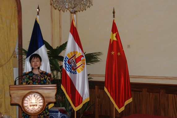 Right after the welcoming ceremony of the Assembly, President Li went to the President’s Office to attend the official welcoming ceremony and addressed the ceremony. President Li pointed out that, she hoped that we could lift the Sino-French Polynesian relation to a new level through the visit. The delegation, all ministers of the French Polynesian government, members of the assembly and representatives from the local Chinese association attended the welcoming ceremony.