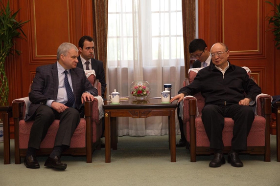On 24th of April, Mr. Chen Yuan, Vice President of Chinese Political Consultative Conference (CPPCC) and President of China-Russia Friendship Association (CRFA) held a meeting with H.E. Mr. Denisov, the Russian Ambassador to China.