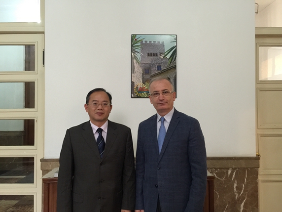 Director General Zhang Heqiang of the Department of American and Oceanic Affairs of CPAFFC paid a visit to His Excellency Kujtim Xhani, Ambassador of the Republic of Albania to China in Beijing on July 21st. DG Zhang and Ambassador Xhani held a cordial talk on many matters. They both recognized the importance of carrying forward the Chinese fine tradition of Ping Pong diplomacy in the new era, and pledged a commitment of commemorating and reviving that tradition in various fashions in near future.