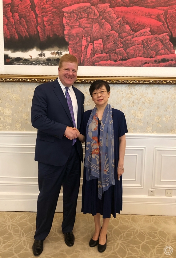 President Li Xiaolin met in Beijing with Myron Brilliant, Executive Vice President and Head of International Affairs of the U.S. Chamber of Commerce on September 9th.