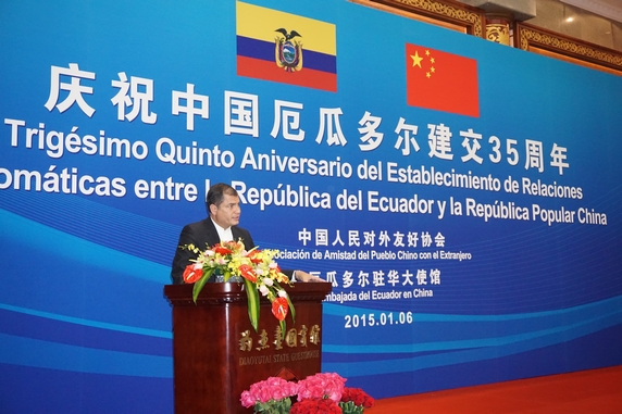 On Jan. 6th, 2015, the CPAFFC hosted a banquet for celebrating the 35th anniversary of the establishment of diplomatic relations between China and Ecuador. Zhang Baowen, Vice-Chairperson of The National People''s Congress (NPC) of the People''s Republic of China, Rafael Correa, President of the Republic of Ecuador, Li Xiaolin, President of the CPAFFC, Qian Hongshan, Assistant Minister of Foreign Ministry of China were present at the banquet.