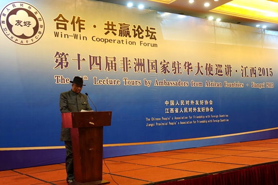The 14th Lecture Tour by African Ambassadors, sponsored by the CPAFFC and organized by Jiangxi Provincial People’s Association for Friendship with Foreign Countries, was held in Nanchang, capital city of Jiangxi Province on 16 June, 2015. H.E. Michael Kinyanjui, Ambassador of Kenya, H.E. Mr. Ringo F. Abed, Ambassador of Namibia, H.E. Getrude Kasuba Mwape, Ambassador of Zambia, H.E. Horace Ankrah, Deputy head of mission of Ghana, Mr. Afework Shimelis Legesse, Minister Counselorof Embassy of Ethiopia and the officials from relevant department of Jiangxi Provincial People’s Government and the businessmen totaling about 200 guests attended the function.