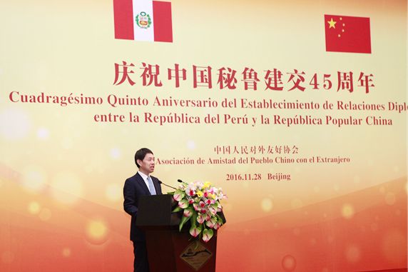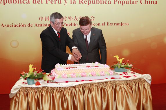 Vice President Hu Sishe and Ambassador Carlos Capunay delivered speeches respectively on the reception. Vice President Hu Sishe pointed out that since the establishment of diplomatic relations, the bilateral ties have been keeping long-term, stable development, the exchanges in various fields increased gradually and the people-to-people friendship has taken deeper roots in the two peoples. Ambassador Carlos Capunay thanked the Chinese side for long-term supporting and said that the Peru side is willing to continue strengthen the cooperation with China and further promote the bilateral relations.
