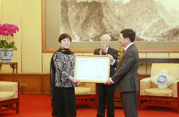 A few days ago, in the name of President Tran Dai Quang, the Socialist Repulbic of Vietnam decided to confer the Vietnam Friendship Medal to President Li Xiaolin. On January 13th, the conferring ceremony was held in Beijing. General Secretary Nguyen Phu Trong of the Communist Party of Vietnam who was on an official visit to China attended the ceremony, Mr. Pham Binh Minh, Vice Prime Minister and Foreign Minister of Vietnam conferred the Medal to President Li.