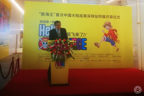 The opening ceremony of the first touring exhibition in China mainland One Piece, the world-class animation work, was held in Sea World Culture and Arts Center in Shenzhen on Novermber 2. Leaders and guests, including Mr. Hu Sishe, Vice President of the Chinese People’s Association for Friendship with Foreign Countries (CPAFFC),Mr. ONO SINNYA, former Vice Minister of Ministry of Education, Culture, Sports, Science and Technology (MEXT), Mr. Liuwei, Deputy Director-General of China Merchants Shekou Industrial Zone Holdings Co., Ltd., Mr. Jiang Hong, Secretary General of ShenZhen Overseas Exchanges Association, Mr. Chen Jianzhong, Chairman of the Board of KOUZAN Fine-arts Company, Mr. HIRONO SHINICHI, Managing Director of Shueisha Inc., Mr. Wang Zhiyuan, Chairman of the Board of YONGHENGSHENG Group, Mr. YAMADA KIICHIROU, Director of TOEI ANIMATION CO., LTD., Mr. Wang Hao, General Manager of Chongqing Dongling Art Co., Ltd., attended the opening ceremony.